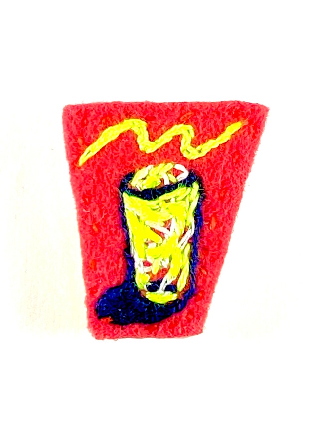 English follows Japanese ☟☟☟ シュワワッと弾ける旨さのレモンサワー! そのインプレッシブでみずみずしい佇まいを ピンブローチに仕上げてみました。 極小サイズなんで、他のブローチと多数付けも コレまたオススメです♨︎ 表はフェスティブな深紅のフェルト。 裏面はヴィヴィッドに彩色したシーチング生地に ブラックのピンでキメてみました★彡 【商品サイズ】 ・大きさ: 21mm × 26mm ・厚み ブローチのみ: 4mm ・厚み ブローチ本体+金具: 10mm ・重さ: 約4g 【素材】 ・フェルト ・シーチング ・アクリル絵具 ・刺繍糸(DMC、cosmoのみ使用) ・接着芯地 ・タックピン(色:ブラック /日本製) 【取扱上のご注意】 ・刺繍は摩擦や引っかけに弱いのでお取扱いには ご注意ください。 ・洗濯機などで洗わないでください。 (ウォッシャブルフェルトを使用しているので、 汚れが気になる場合はぬるま湯に液体洗剤を少し混ぜた ものにしばらく浸し、タオルなどで軽く押さえてから 自然乾燥させてください。) 【その他】 ・ハンドメイド商品であることをご理解の上、 ご購入くださいますようお願いいたします。 フェルトに手刺繍を施し接着芯を圧着して さらに周りを縫って仕上げております。 ピンは縫い留めてあります。 ・写真と実際の商品とは多少色味が異なる場合があります。 ※その他ご不明な点や気になる点がございましたら メッセージからご連絡ください。 【Size】 ・Size: 21mm × 26mm ・Thickness (brooch only): 4mm ・Thickness (brooch+pin): 10mm ・Weight: 4g 【Materials】 ・Felted fabric ・Cotton ・Acrylic ・Embroidery thread(DMC、cosmo) ・Fusible interlining fabric ・Tack Pin (Color: Black/Japan made) 【Handling precautions】 ・Please handle with care as embroidered items are easily affected by friction and get caught. ・Please DO NOT use washing machine. (To get rid of dirt on surface, soak washing in tepid water with a little amount of liquid laundry detergent is recommended. Dry naturally after wiping with towel.) 【Notes】 ・Hand-embroidered on felted fabric, crimped with fusible interlining, then sewed along contour. Pin is tightly sewed up. ・Colors of the image might be slightly different from the actual product. ※If you have any questions or concerns, do not hesitate to contact us at any time.
