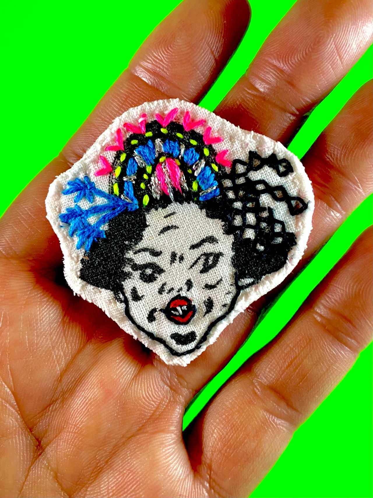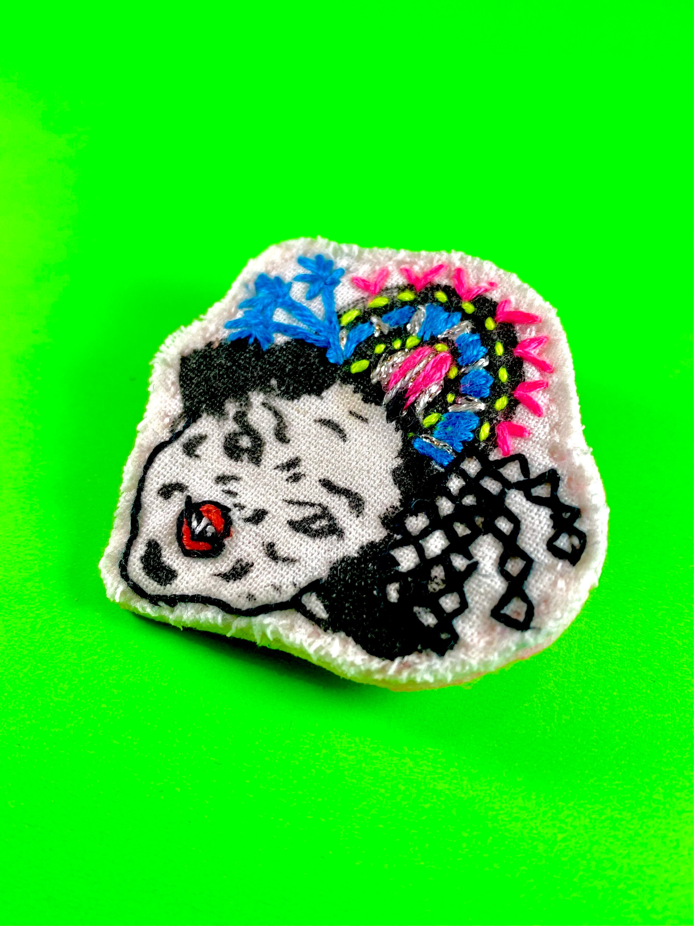 頭部中心に手刺繍をほどこしました。