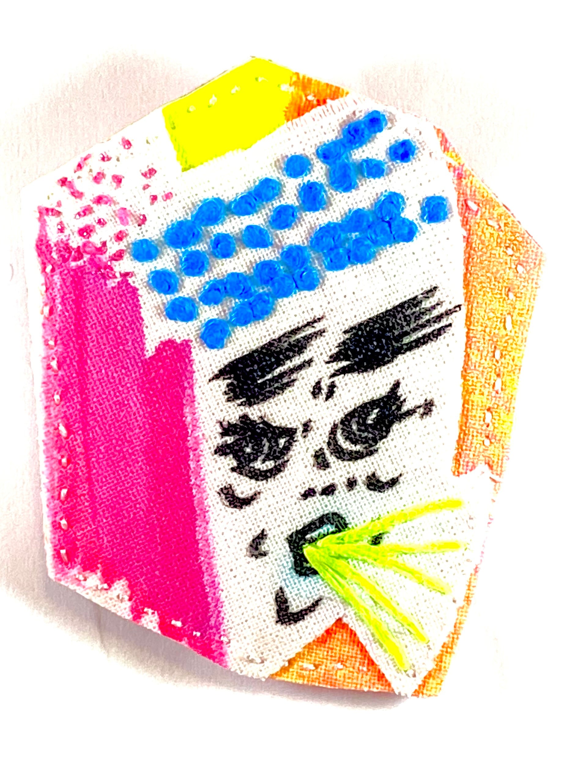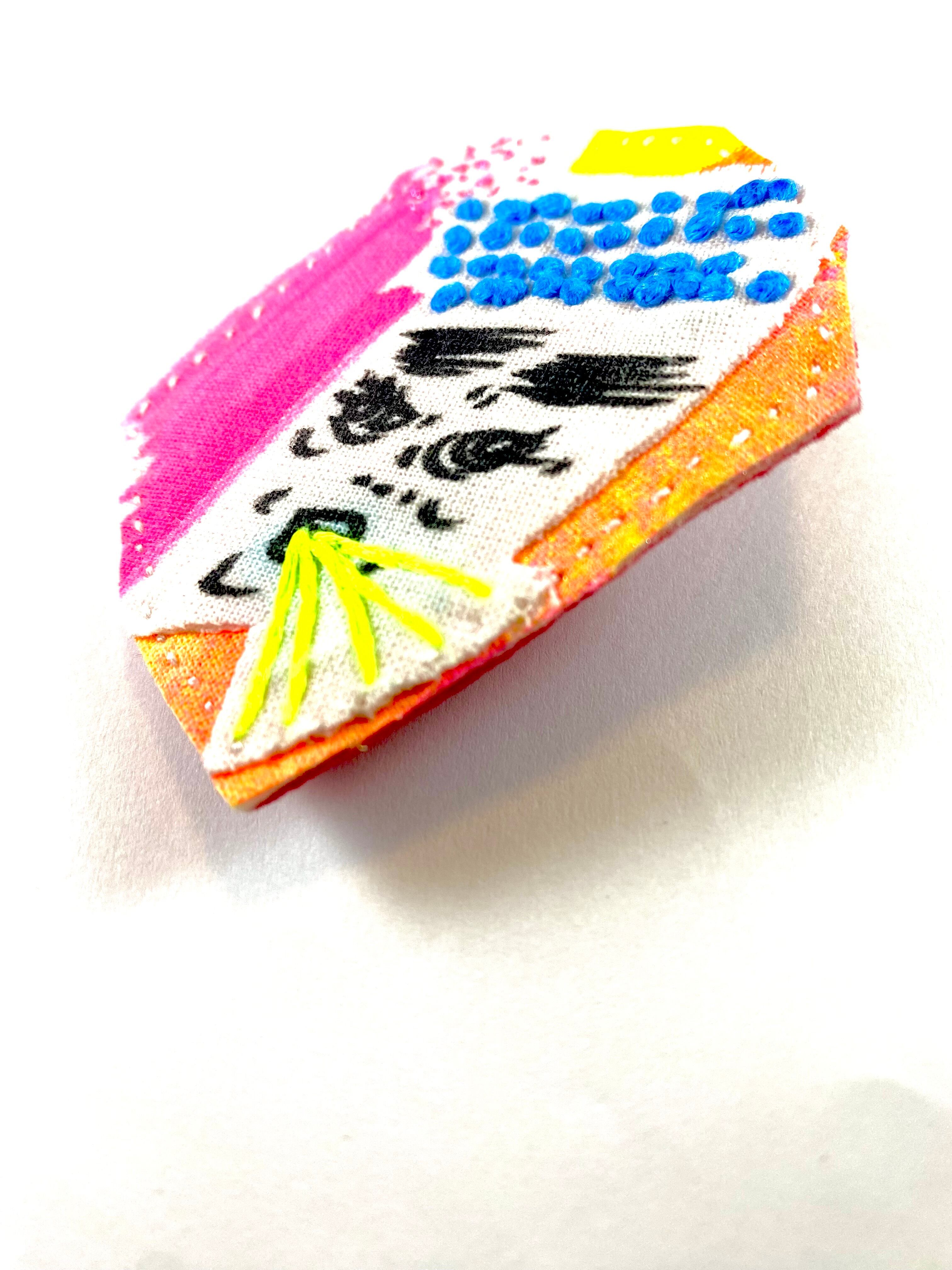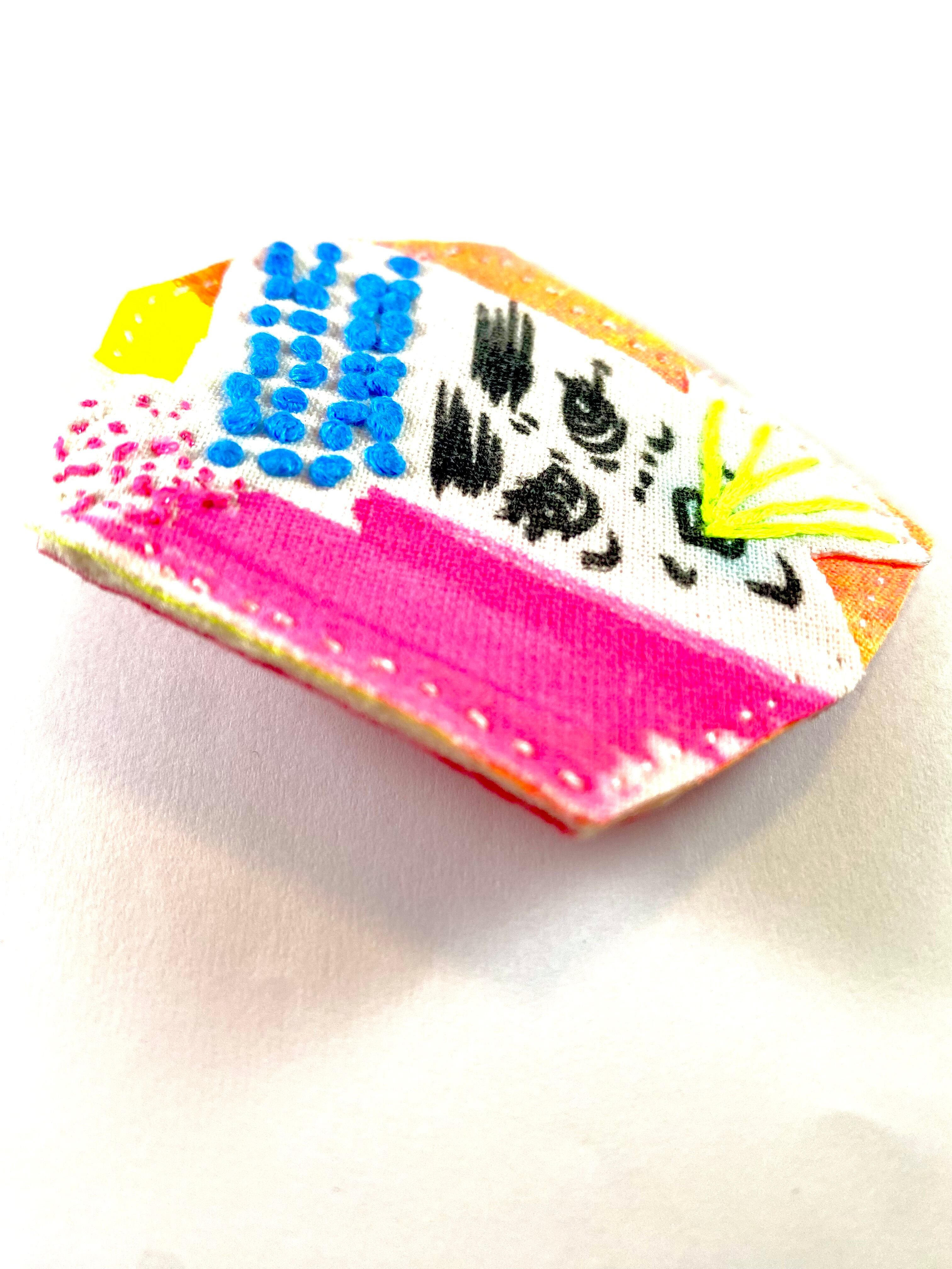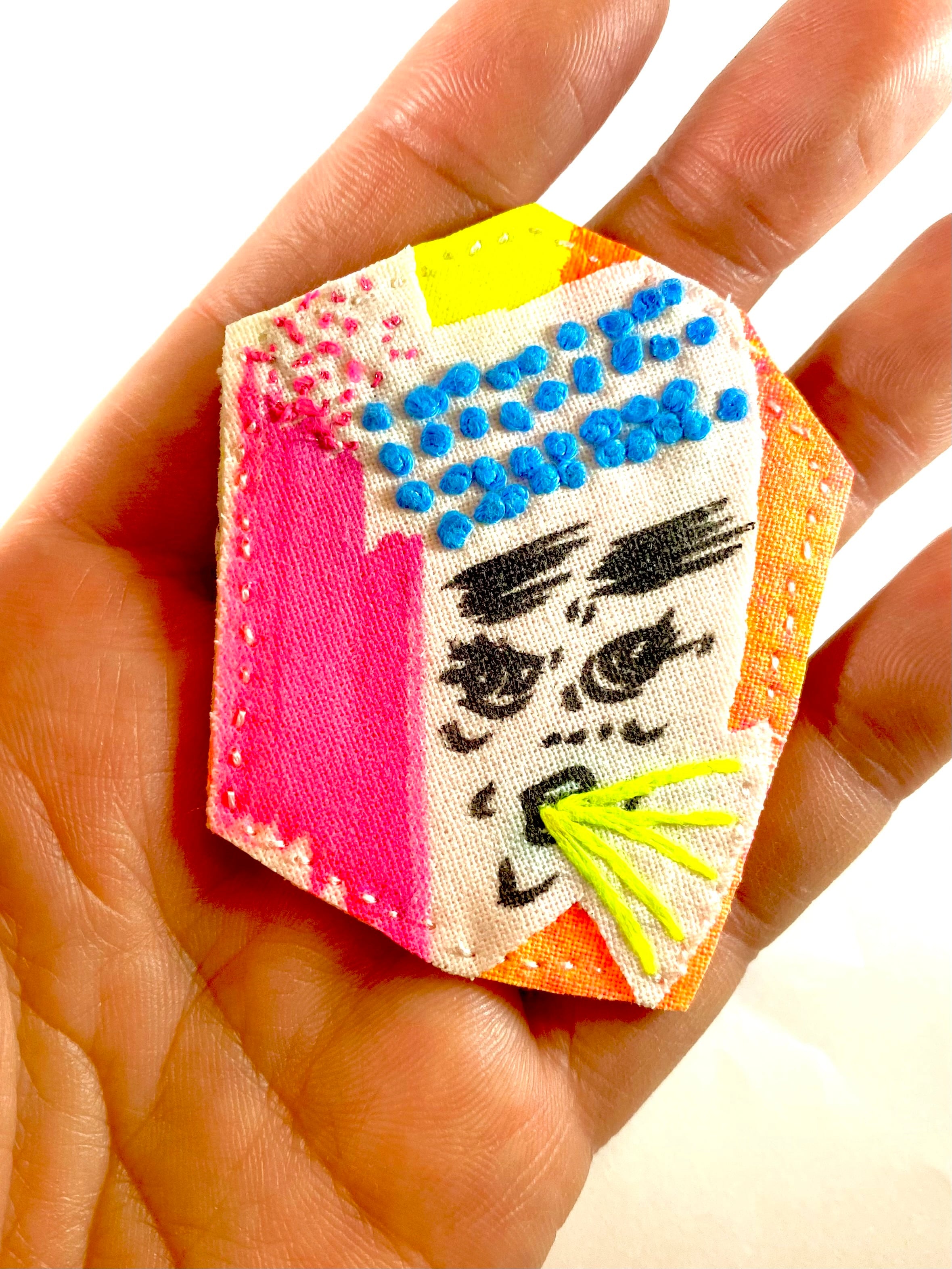 フェルトに手刺繍を施し接着芯を圧着して