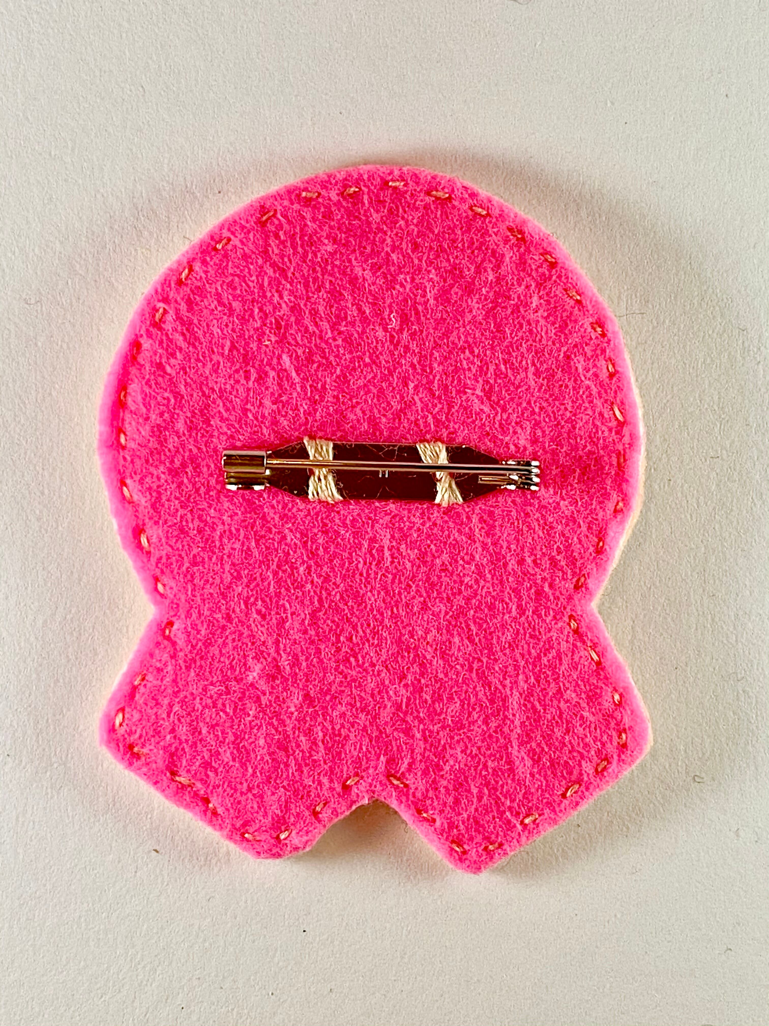 フェルトに手刺繍を施し接着芯を圧着して