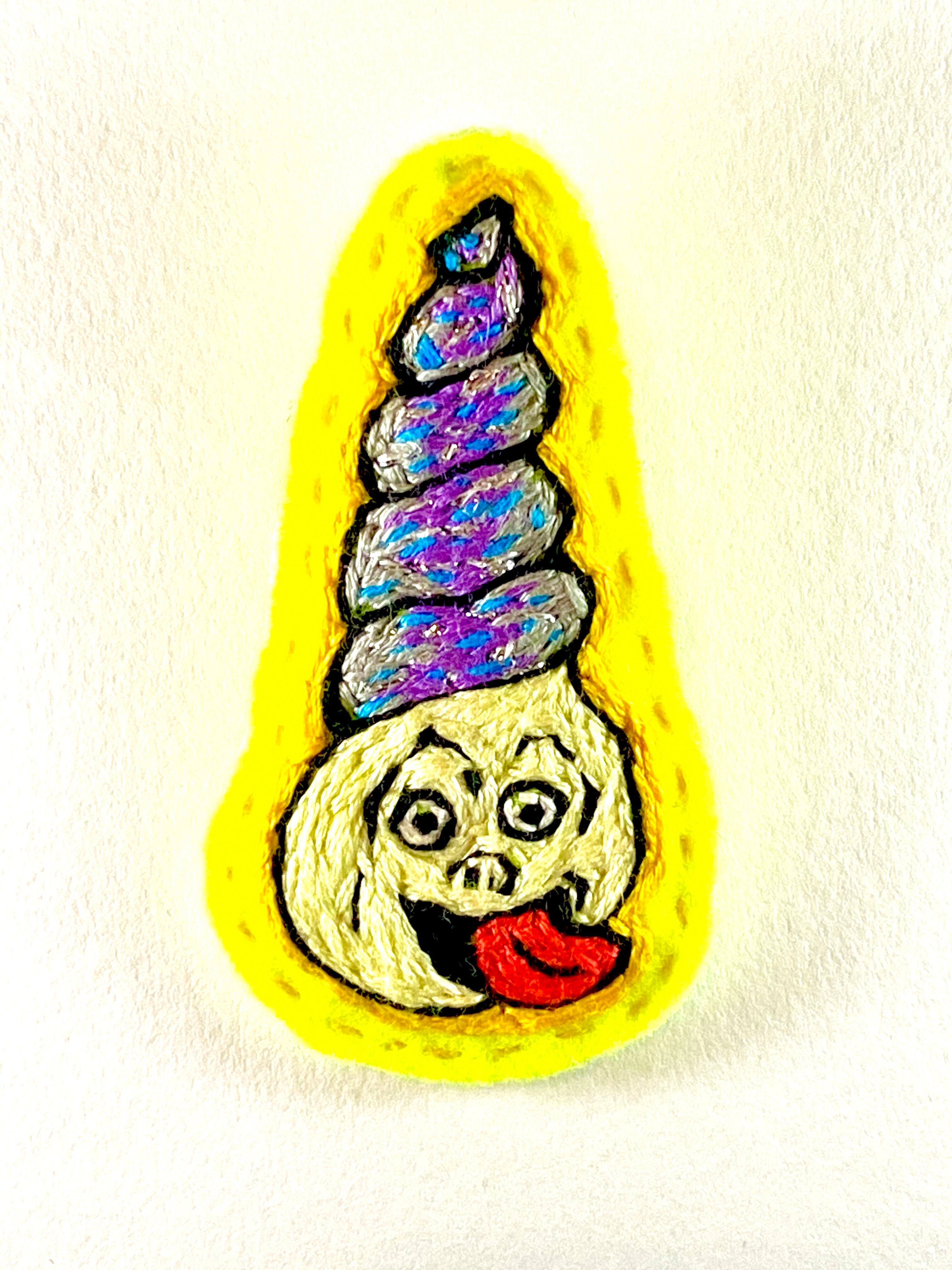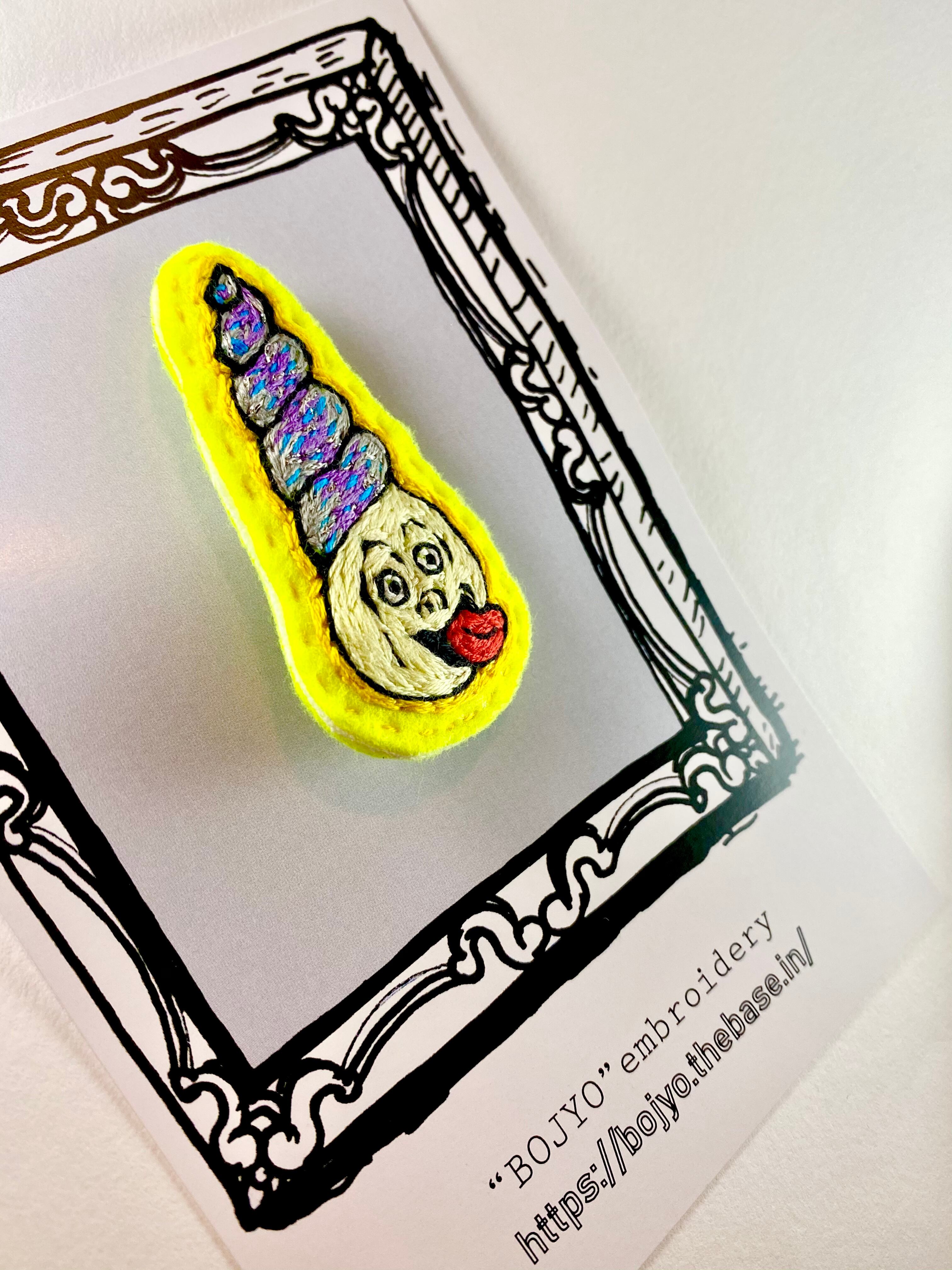 フェルトに手刺繍を施し接着芯を圧着して