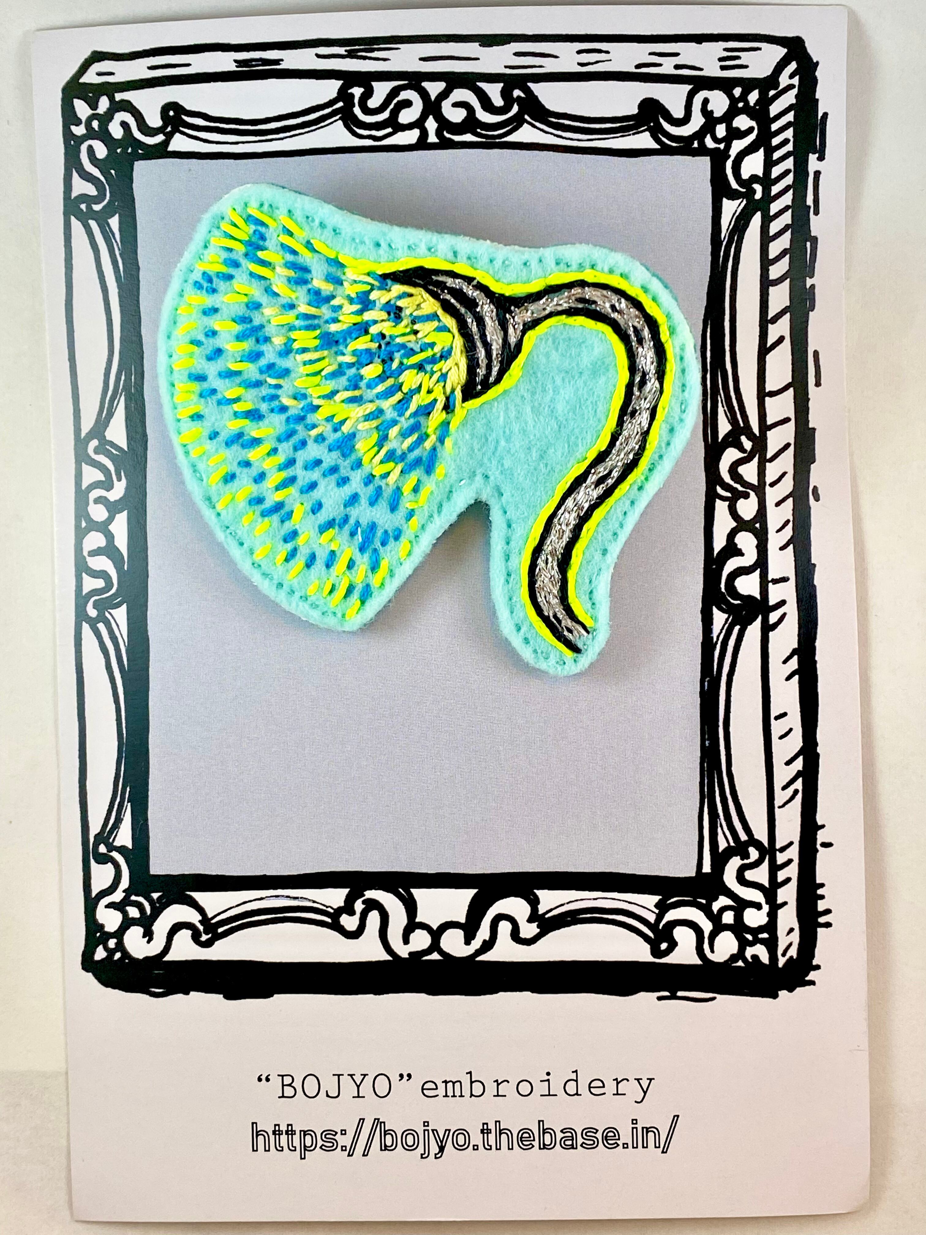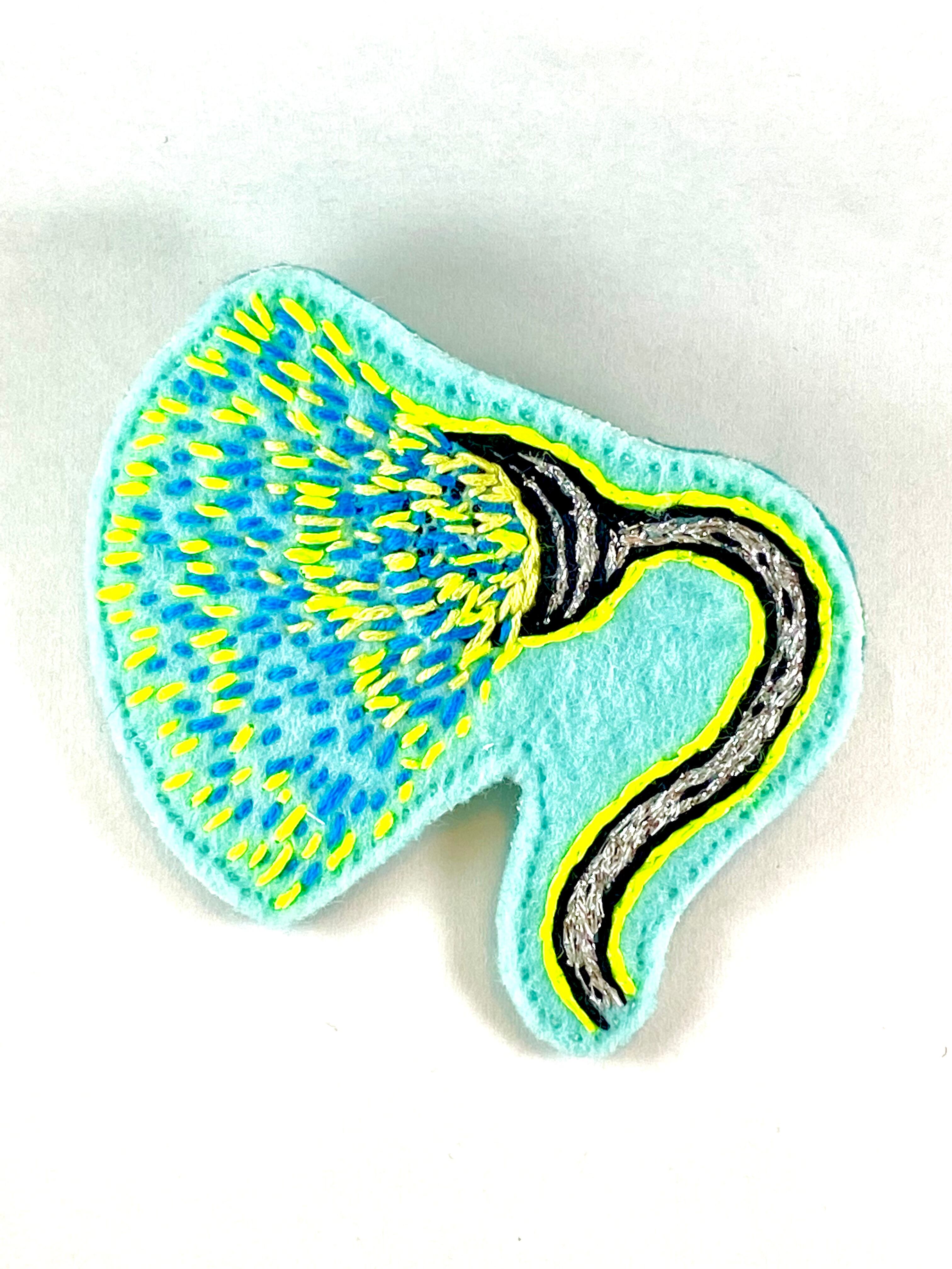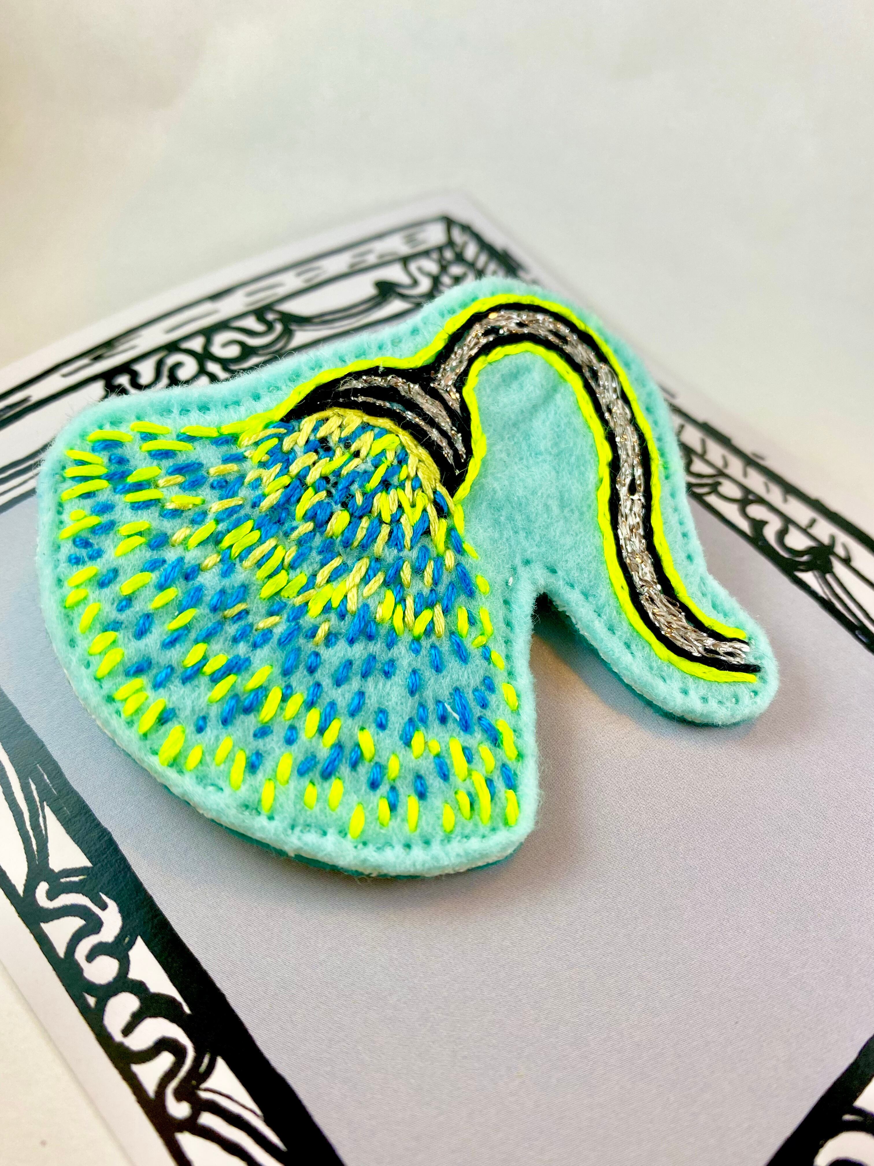 フェルトに手刺繍を施し接着芯を圧着して