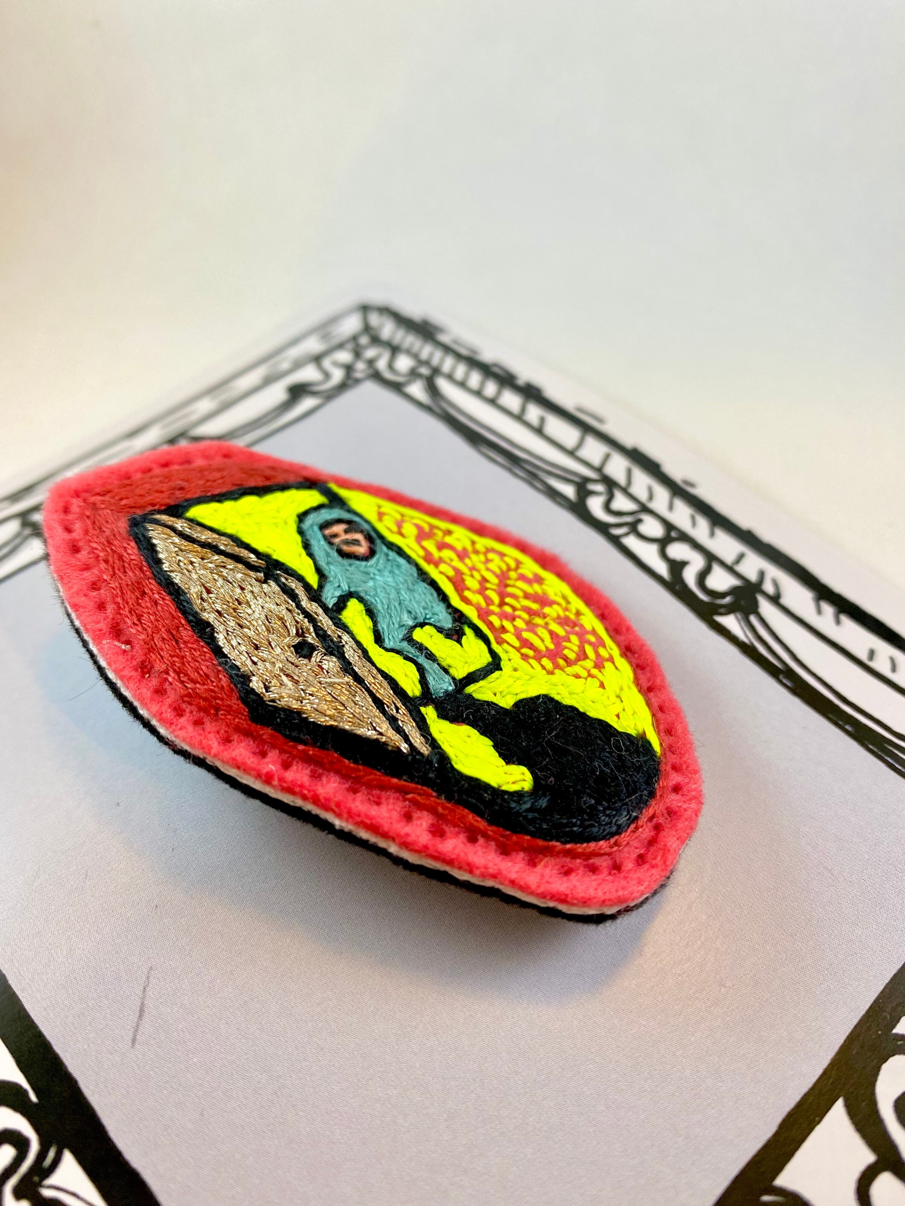 ・Hand-embroidered on felted fabric,