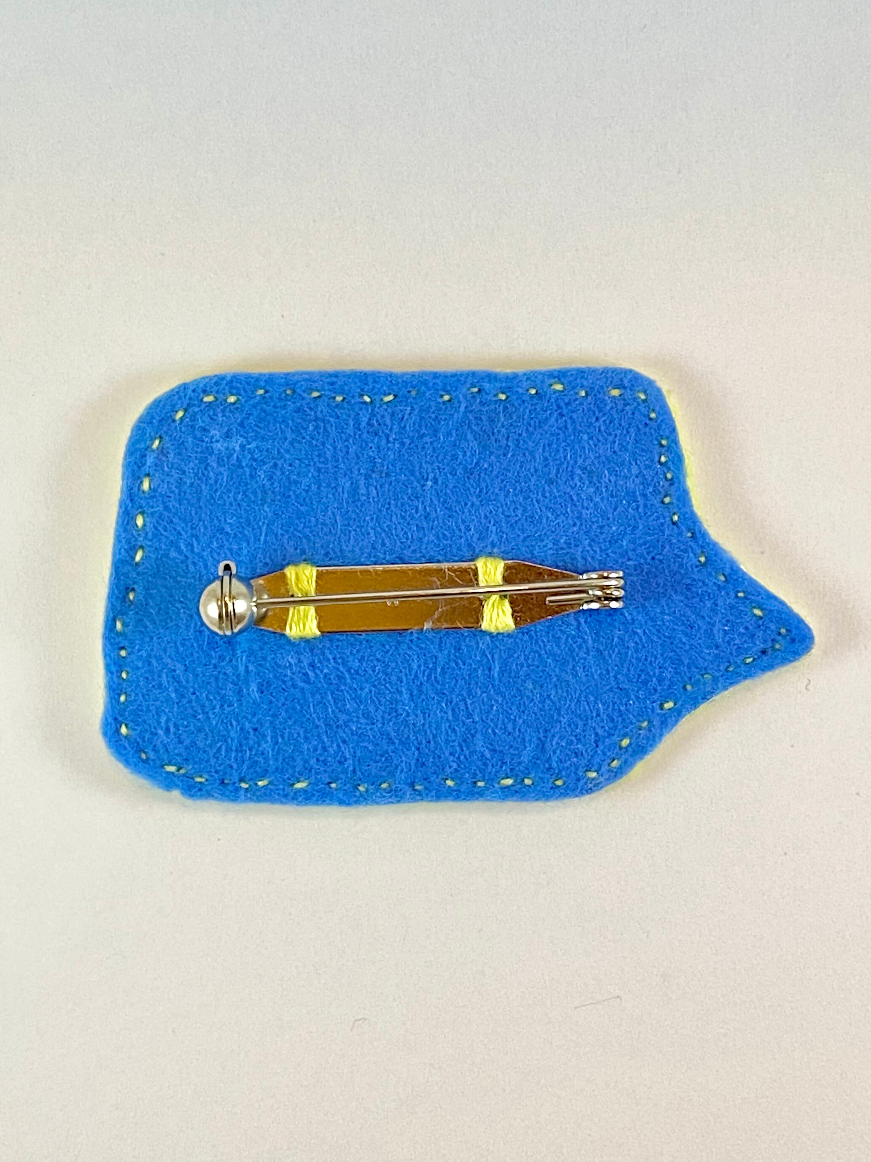 フェルトに手刺繍を施し接着芯を圧着して