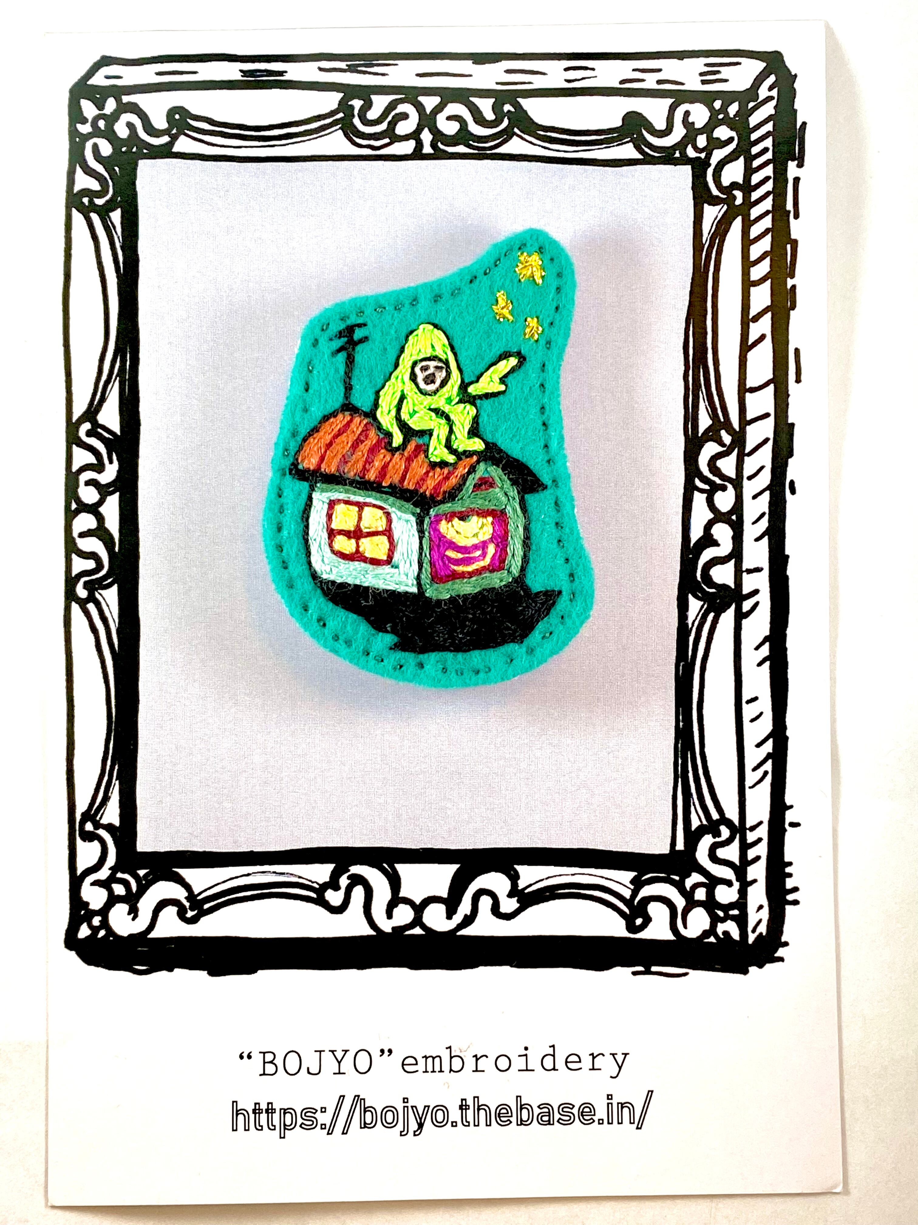 フェルトに手刺繍を施し接着芯を圧着して